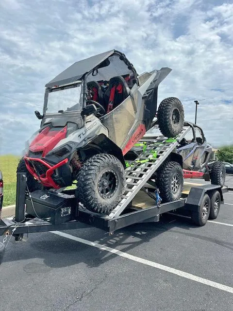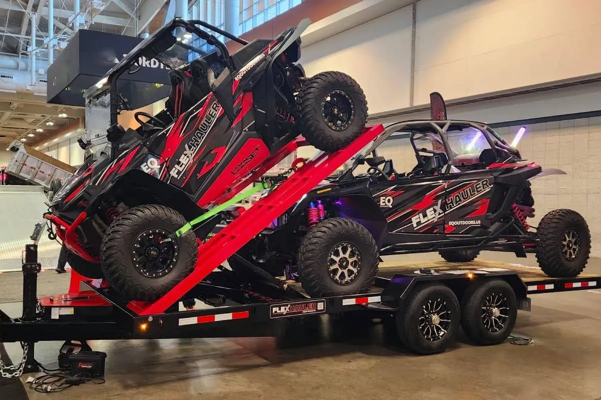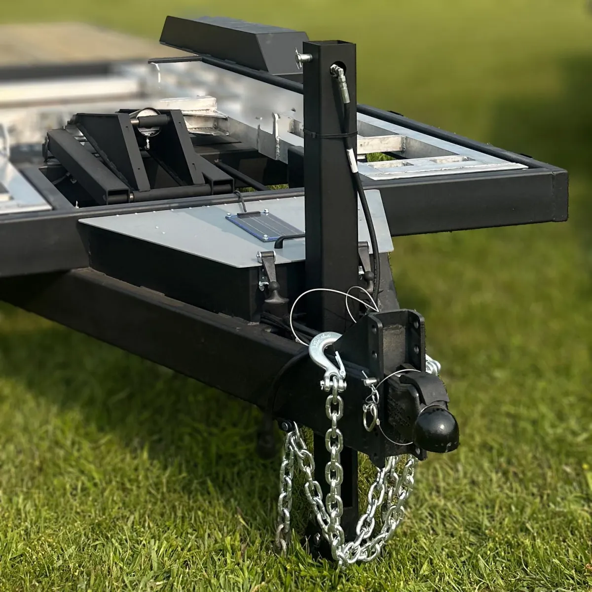 Revolutionary tilt stack technology that changes everything about SXS hauling. Load your first side-by-side, activate the hydraulic tilt system to stack it up, then load your second machine underneath. Two machines, one compact 20-foot trailer.
